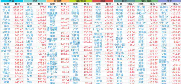關鍵券商買賣超: 臺銀證券(1040): 台灣摩根