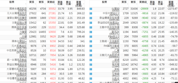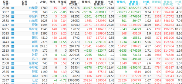 上市:【外資、投信】買超(依金額) &