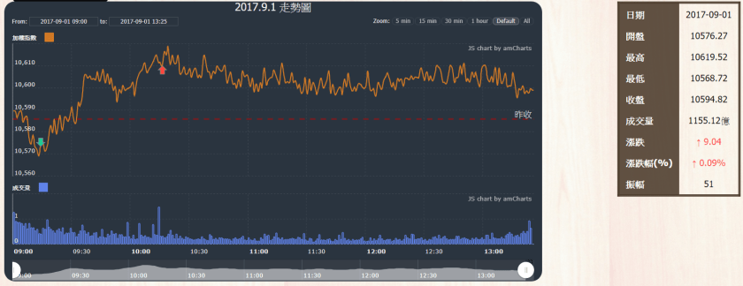 2017-09-01 收盤價: 10594.82