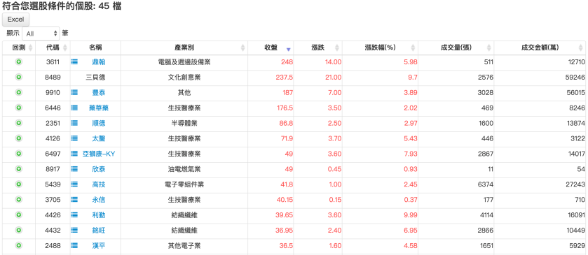 如何挑選突破盤整,爆量上漲起漲點的股票 2018-08-21 stockdog168 選股條件 一條留言 利用股狗選股的選股條件可以【挑選突破盤整,爆量上漲起漲點股票】 1.股狗選股https://pick.stockdog.com.tw 2.選股條件: a.收盤價創20日新高 b.成交量大於5日均量1.5倍 分享此文: 按一下即可分享至 X(在新視窗中開啟) X 按一下以分享至 Facebook(在新視窗中開啟) Facebook 喜歡 正在載入...