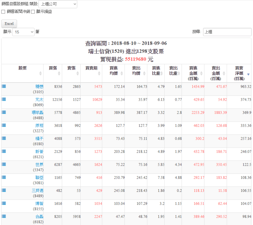 Step 4:可以選取【上櫃公司】便會列出上櫃該券商買超的個股。