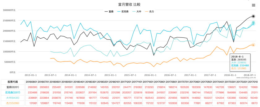 20180926熱門族群[MOSFET]比較 2018-09-26 aindex168 個股分析 發表留言 由於國際IDM廠退出個人電腦及伺服器MOSFET市場,國內業者持續受惠於轉單效應及漲價效應,[MOSFET](富鼎 (8261) 、尼克森(3317)、大中(6435) 、杰力(5299))在8月營收同登今年新高,其中大中及杰力更是創單月營收歷史新高,大中8月合併營收月增7.0%達2.40億元,年成長率18.7%並創歷史新高;杰力8月合併營收月增1.6%達1.32億元,年成長率28.4%亦創歷史新高。因MOSFET市場供不應求,再加上價格調漲5~10%幅度,未來營收成長仍可期待。 免責宣言 本網站文章所提供資訊僅供參考,並無任何推介買賣之意,投資人應自行承擔交易風險。 分享此文: 按一下即可分享至 X(在新視窗中開啟) X 按一下以分享至 Facebook(在新視窗中開啟) Facebook 喜歡 正在載入...