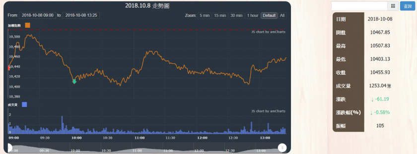 今日大盤在台積電持續重挫下指數持續測試低點,大盤加權指數收盤為10455.93,下跌61.19點,成交量爆量為1253億元。當日盤勢開低盤後立即快速拉升至接近平盤,而之後在台積電強大的賣壓下,指數一度快速測試10400低點位置,指數在八大行庫慢慢拉升台積電下,指數至尾盤拉回至10455點。
