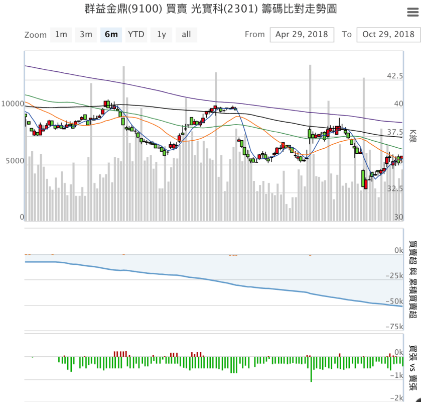 Step 5:進行區間賣超詳細分析,選取該券商,如下圖所示可以了解該券商賣超過程,近6個月該券商持續賣超。
