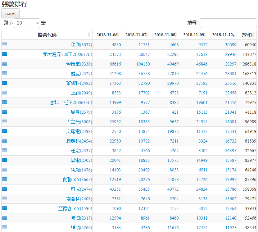20181112認購(售)權證標的買賣超排行 2018-11-12 stockdog168 權證每日資訊 發表留言 權證在外流通量 1.張數排行為扣除自營商避險淨額後,計算淨流入/流出市場之張數。 2.金額排行為扣除發行商之買賣後,計算淨流入/流出市場之金額。 資料來源:https://www.stockdog.com.tw 【認購權證標的】買超排行: 【認購權證標的】賣超排行: 【認售權證標的】買超排行: 【認售權證標的】賣超排行: 免責宣言 本網站文章所提供資訊僅供參考,並無任何推介買賣之意,投資人應自行承擔交易風險。 分享此文: 按一下即可分享至 X(在新視窗中開啟) X 按一下以分享至 Facebook(在新視窗中開啟) Facebook 喜歡 正在載入...