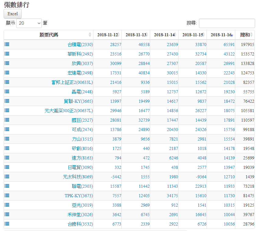 20181116認購(售)權證標的買賣超排行 2018-11-16 stockdog168 權證每日資訊 發表留言 權證在外流通量 1.張數排行為扣除自營商避險淨額後,計算淨流入/流出市場之張數。 2.金額排行為扣除發行商之買賣後,計算淨流入/流出市場之金額。 資料來源:https://www.stockdog.com.tw 【認購權證標的】買超排行: 【認購權證標的】賣超排行: 【認售權證標的】買超排行: 【認售權證標的】賣超排行: 免責宣言 本網站文章所提供資訊僅供參考,並無任何推介買賣之意,投資人應自行承擔交易風險。 分享此文: 按一下即可分享至 X(在新視窗中開啟) X 按一下以分享至 Facebook(在新視窗中開啟) Facebook 喜歡 正在載入...