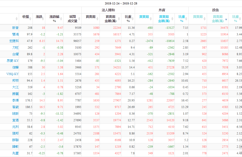 20181224-1228本週【外資、投信】買超個股 2018-12-30 stockdog168 投資誌-大盤 發表留言 【上市外資買超個股】 【上市投信買超個股】 【上櫃外資買超個股】 【上櫃投信買超個股】 免責宣言 本網站文章所提供資訊僅供參考,並無任何推介買賣之意,投資人應自行承擔交易風險。 分享此文: 按一下即可分享至 X(在新視窗中開啟) X 按一下以分享至 Facebook(在新視窗中開啟) Facebook 喜歡 正在載入...