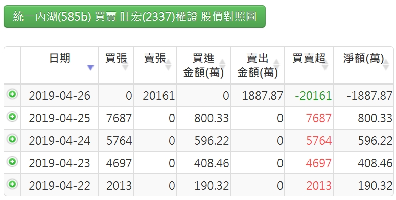 【統一內湖】近5日買進賣出旺宏【認售權證】情形如下: