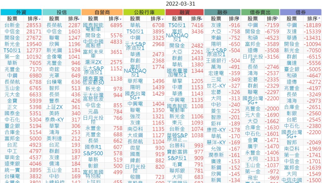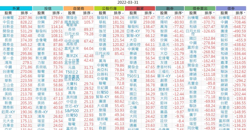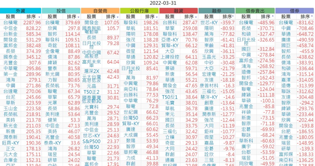 上市:【外資、投信】買超(依金額)   (單位:百萬)