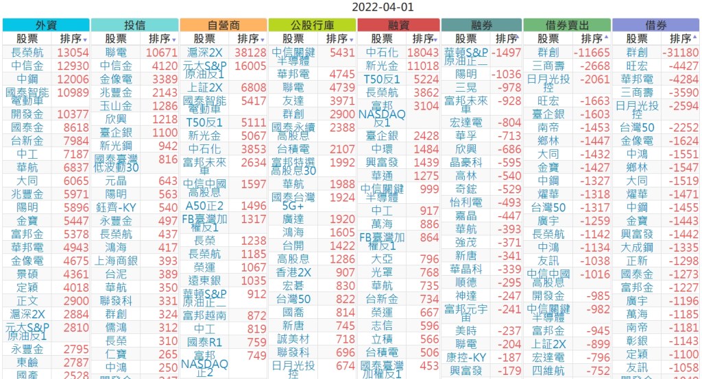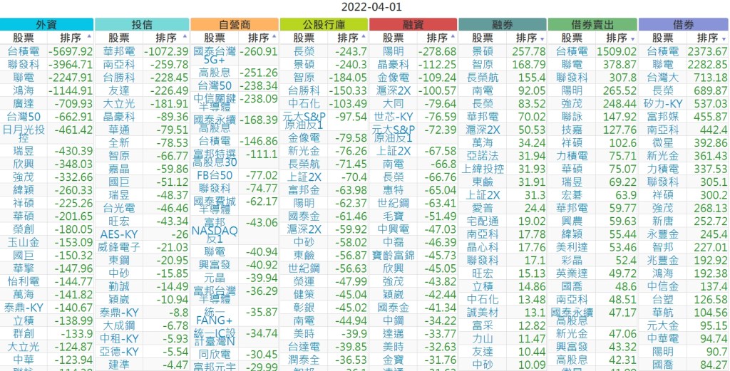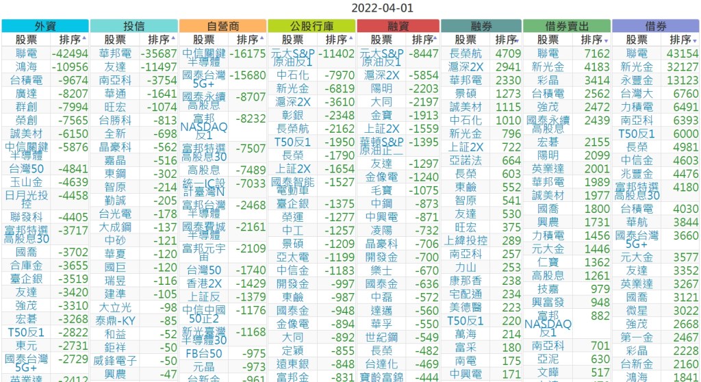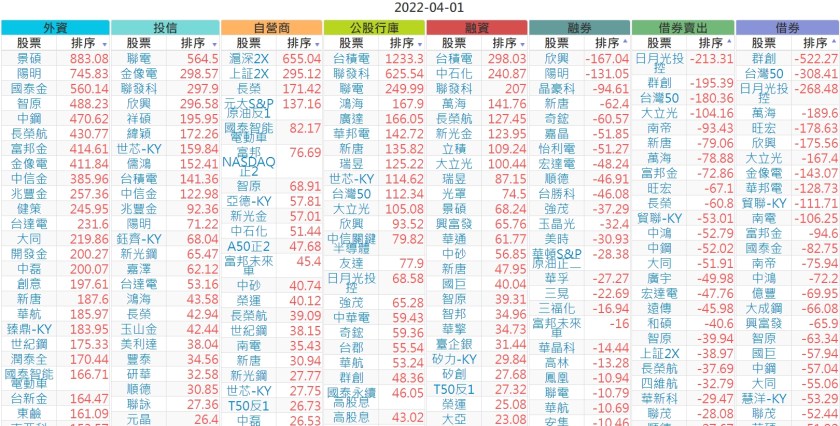 2022-0401上市【外資、投信】買賣超個股