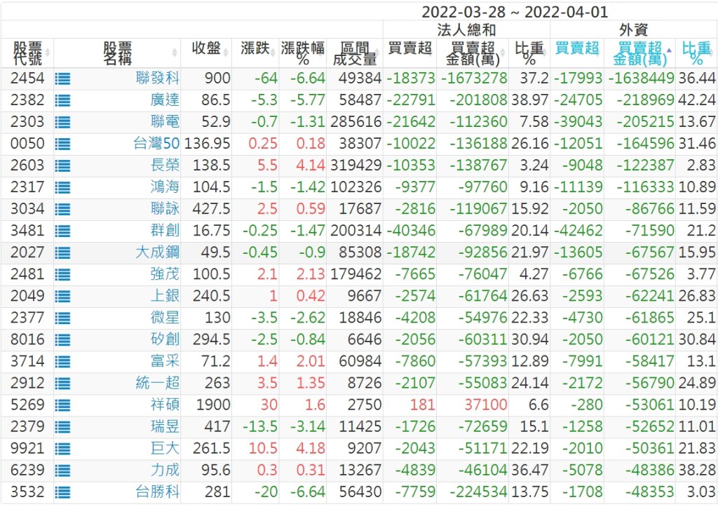 【上市外資賣超個股】(以金額排行,單位:萬)