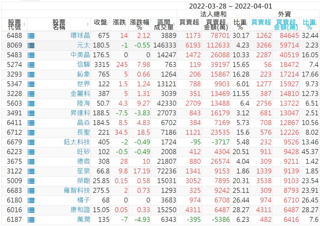 【上櫃外資買超個股】(以金額排行,單位:萬)