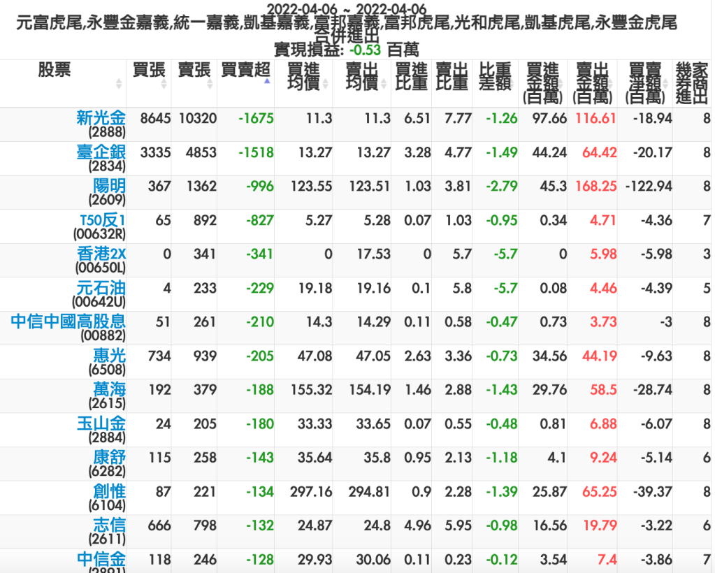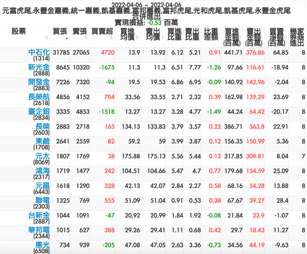 『元富虎尾』,『永豐金嘉義』,『統一嘉義』,『凱基嘉義』,『富邦嘉義』,『富邦虎尾』,『光和虎尾』,『凱基虎尾』,『永豐金虎尾』。