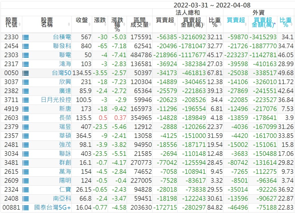 【上市外資賣超個股】(以金額排行,單位:萬)