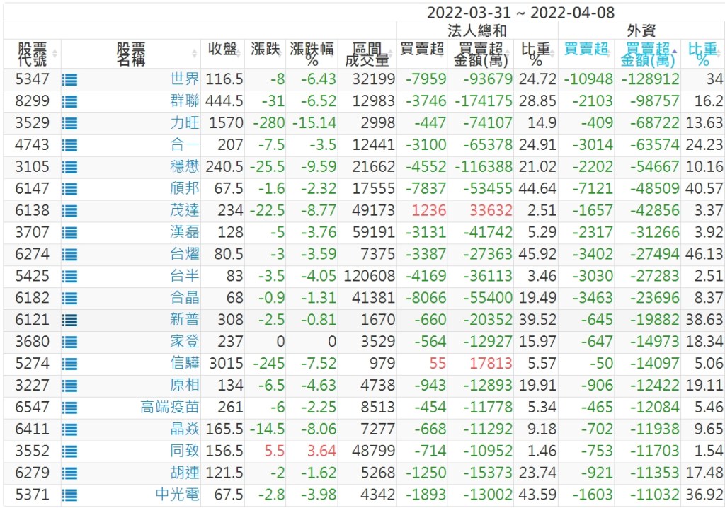 【上櫃外資賣超個股】(以金額排行,單位:萬)
