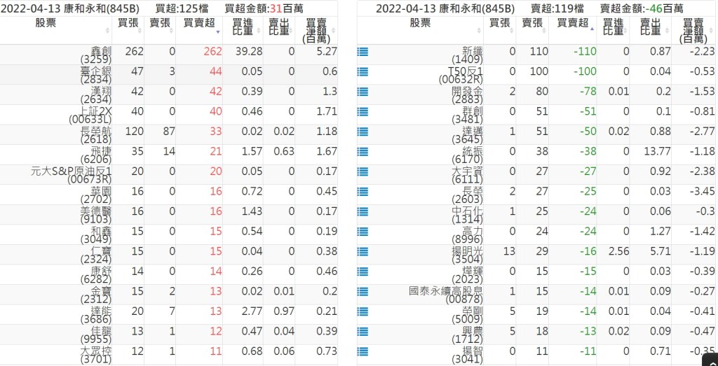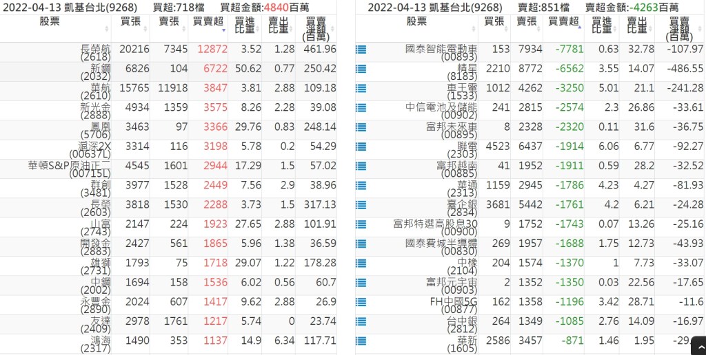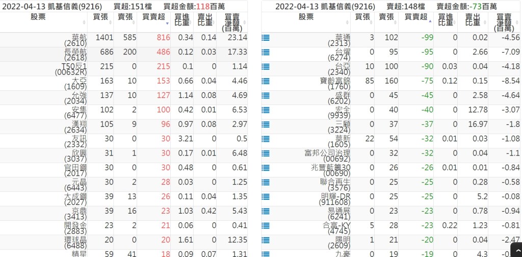 關鍵券商買賣超: