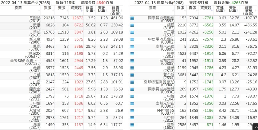 關鍵券商買賣超: