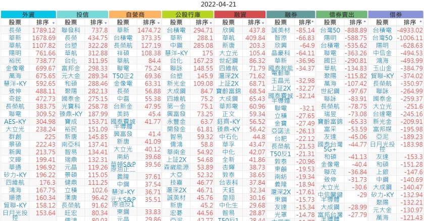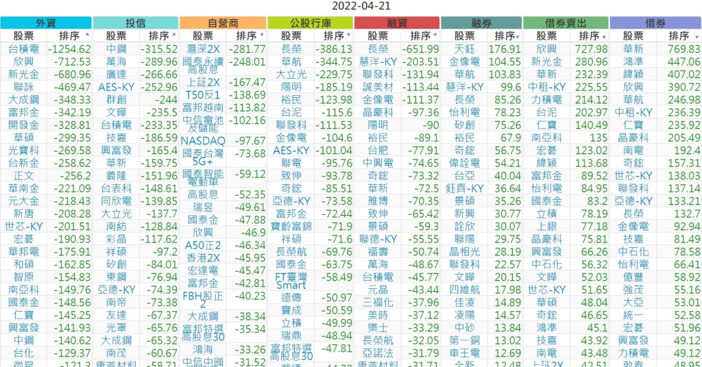 上市:【外資、投信】賣超(依張數)   (單位:張數)