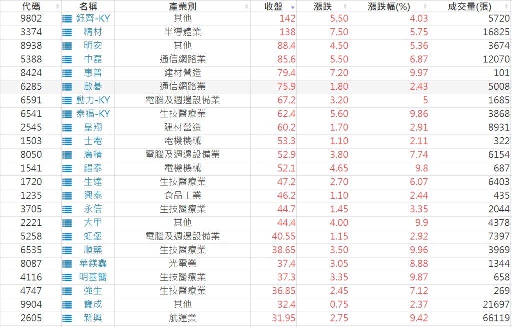 2022-0421股價創20日新高爆量上漲股