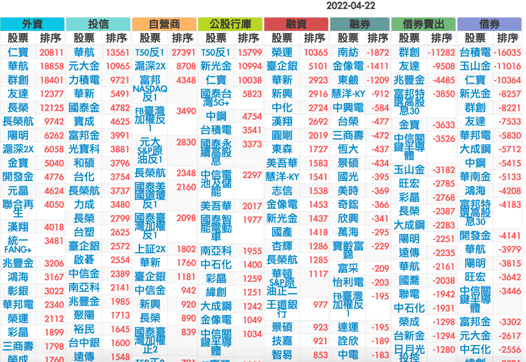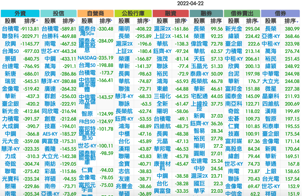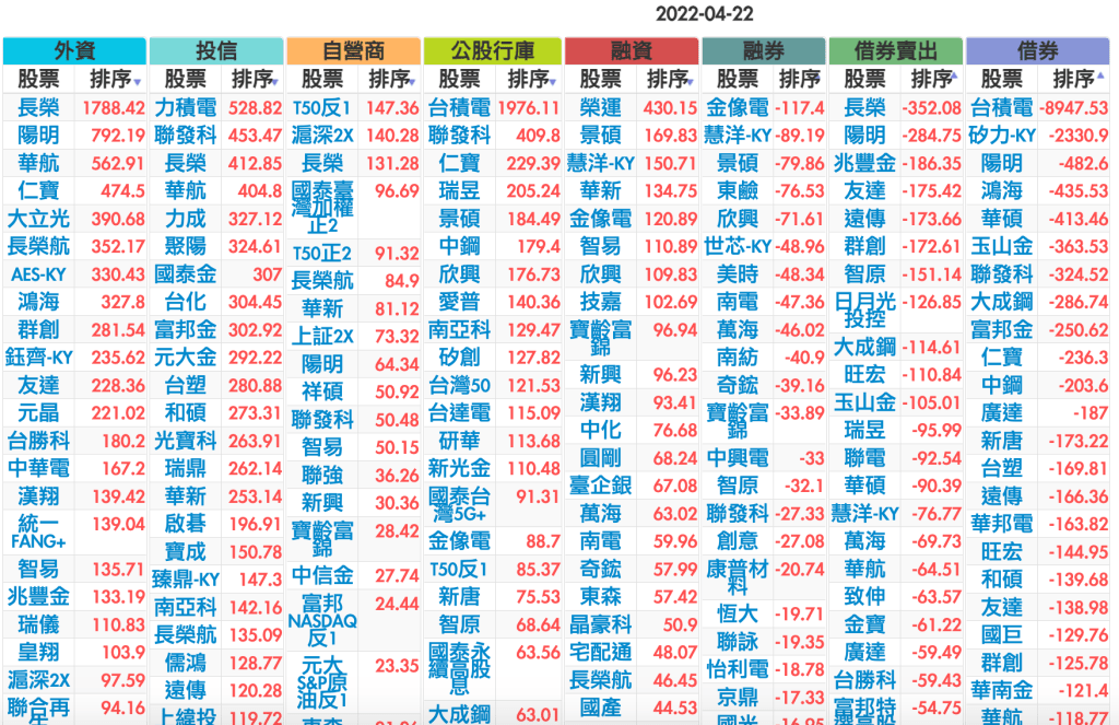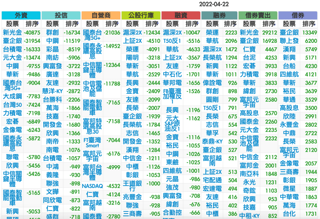 2022-0422上市【外資、投信】買賣超個股
