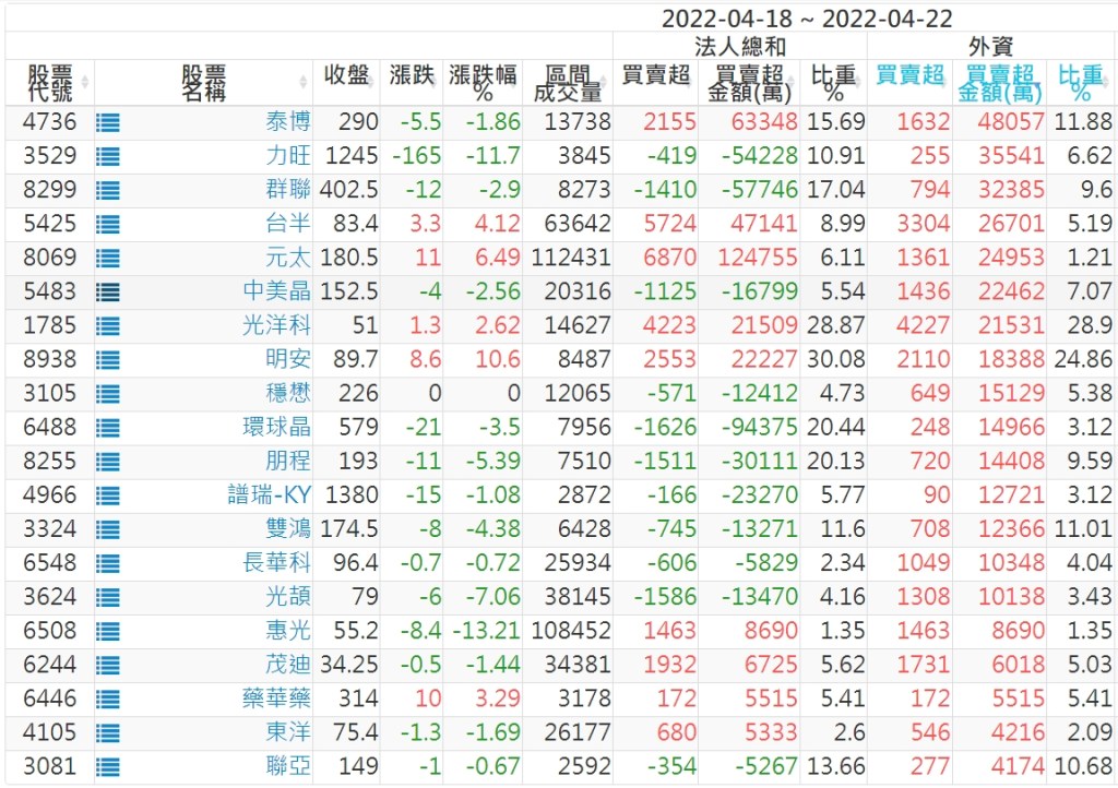 【上櫃外資買超個股】(以金額排行,單位:萬)