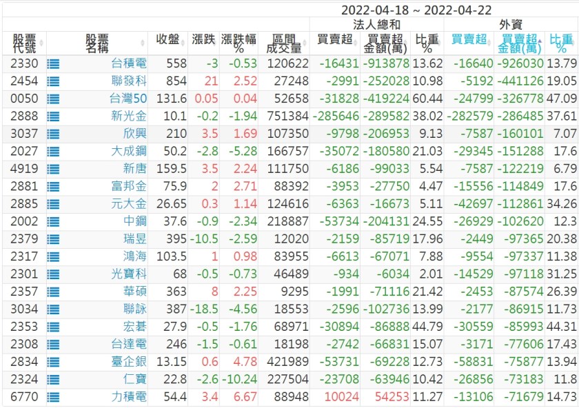 【上市外資賣超個股】(以金額排行,單位:萬)