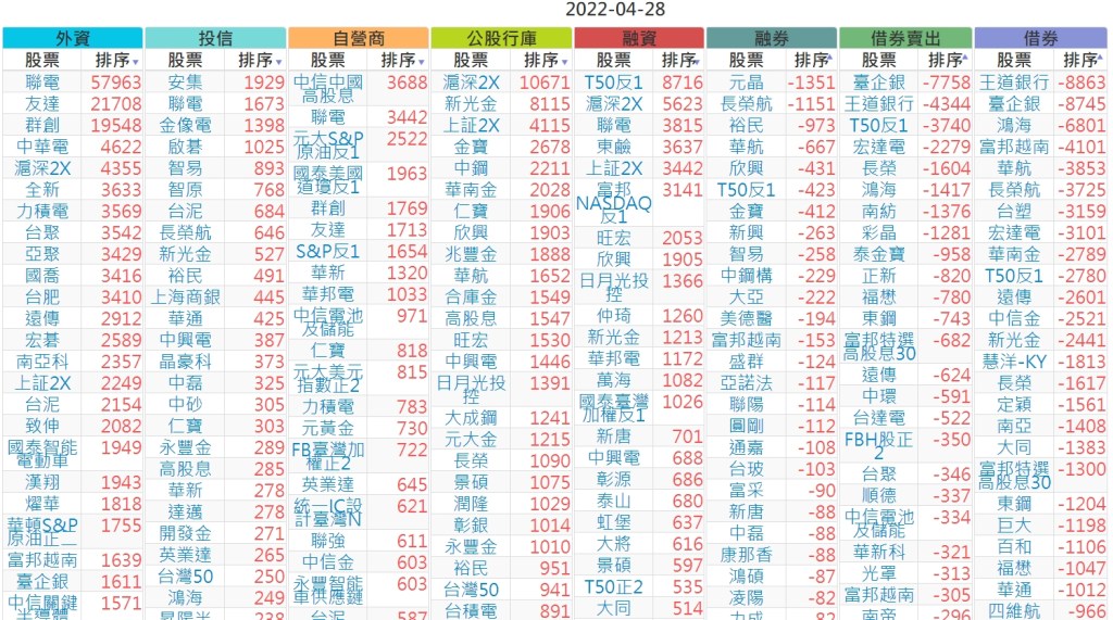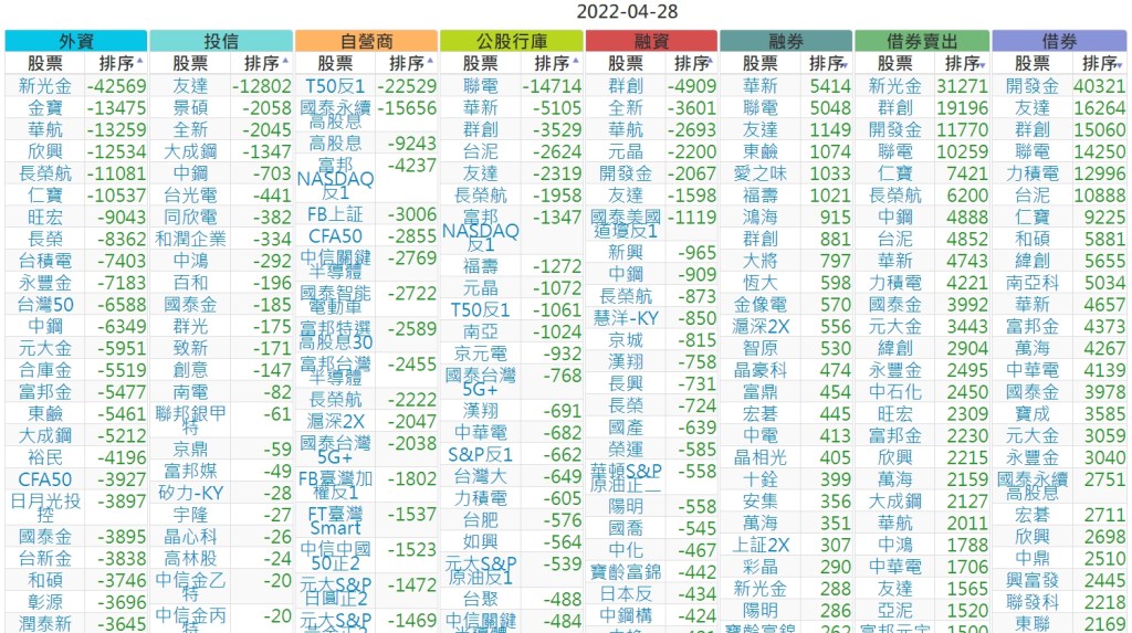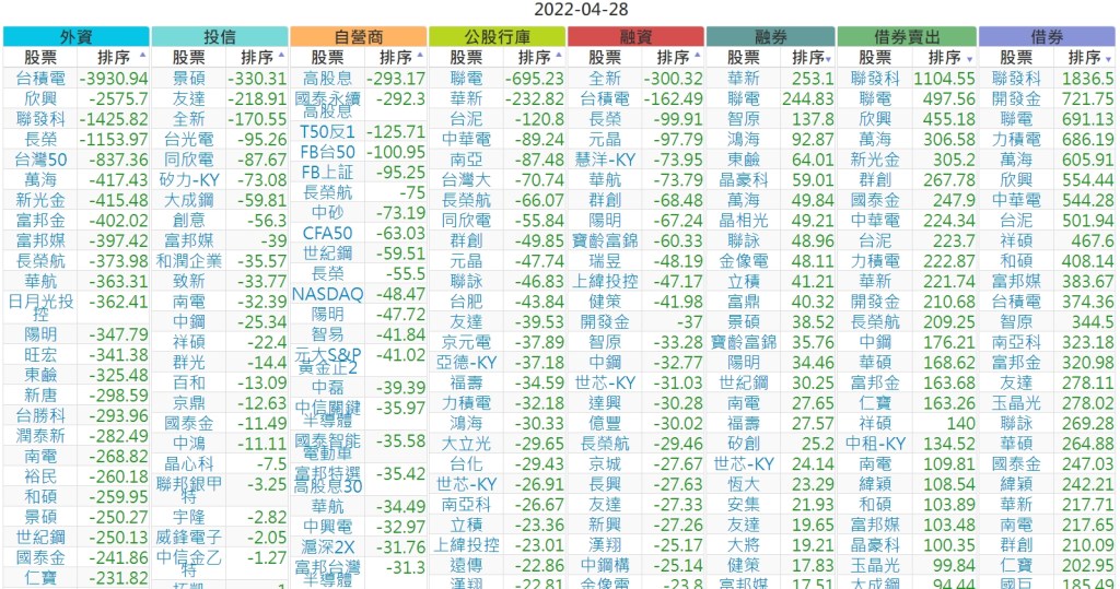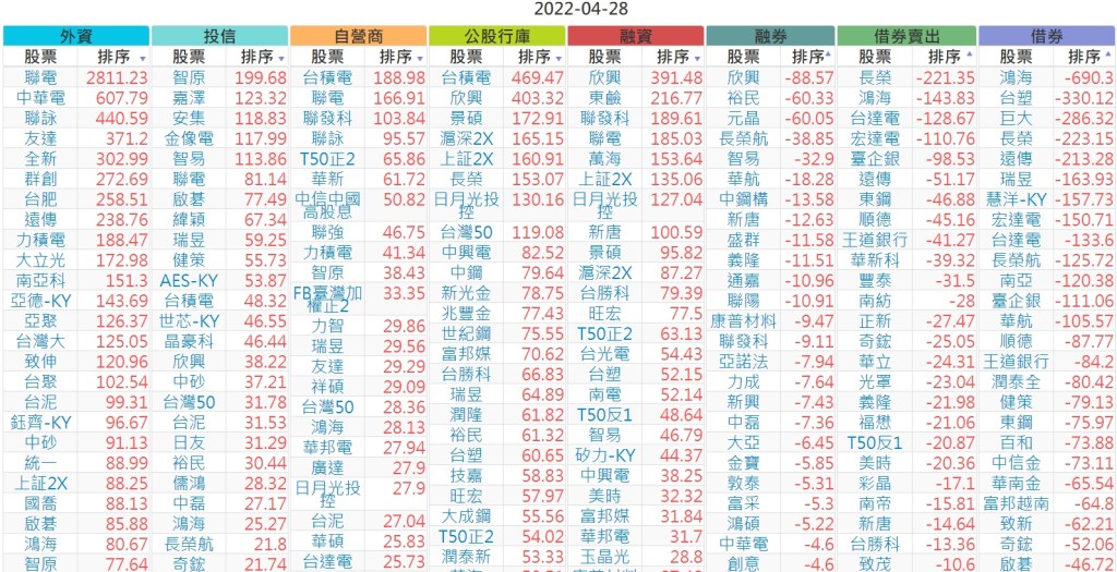 2022-0428上市【外資、投信】買賣超個股