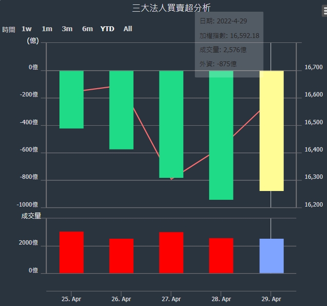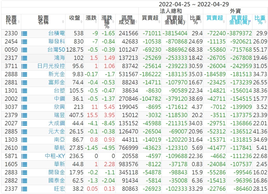 外資本周累積【賣超】約875億元。