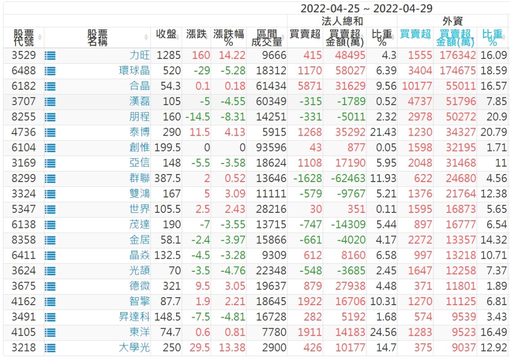 【上櫃外資買超個股】(以金額排行,單位:萬)