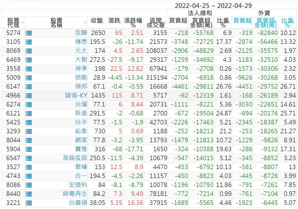【上櫃外資賣超個股】(以金額排行,單位:萬)