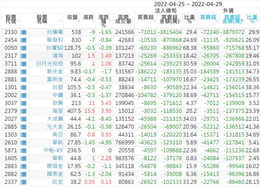 外資本周累積【賣超】約875億元。