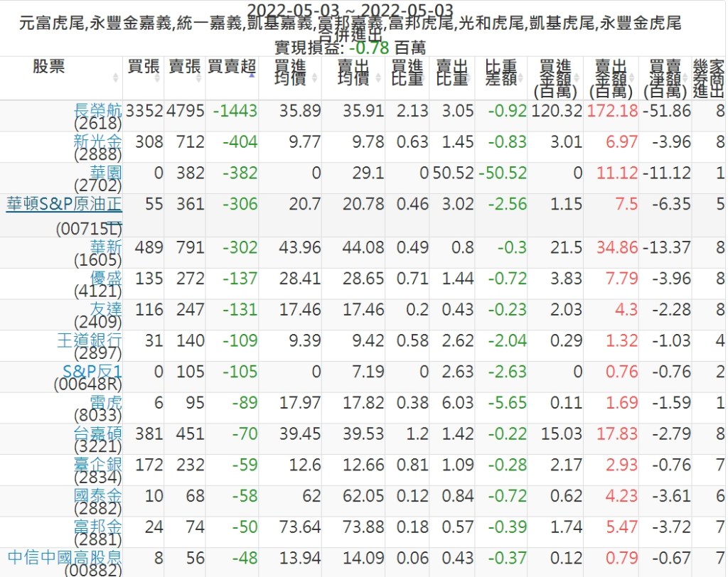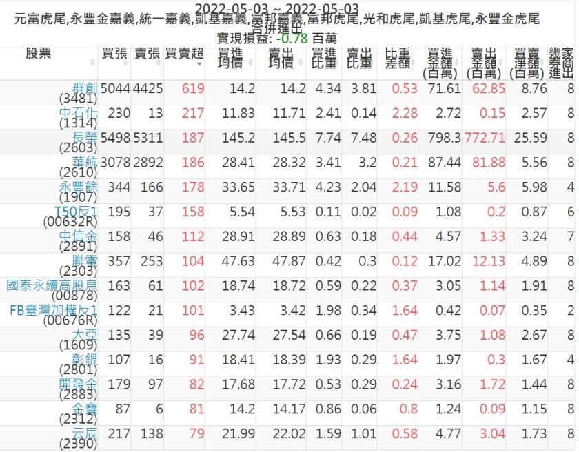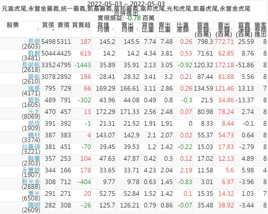 『元富虎尾』,『永豐金嘉義』,『統一嘉義』,『凱基嘉義』,『富邦嘉義』,『富邦虎尾』,『光和虎尾』,『凱基虎尾』,『永豐金虎尾』。