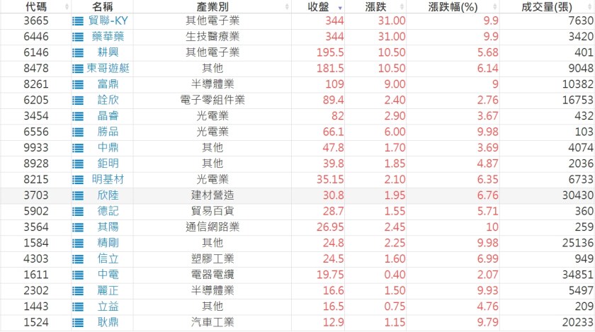 a.收盤價創20日新高