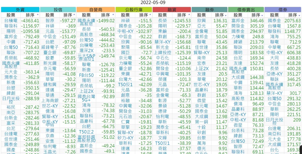 上市:【外資、投信】賣超(依金額)   (單位:百萬)