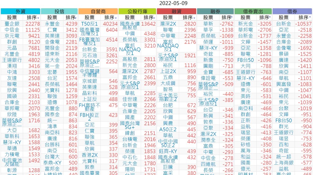 上市:【外資、投信】買超(依張數)   (單位:張數)
