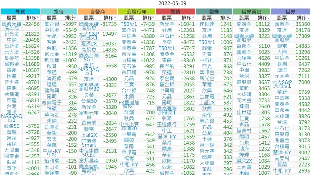 上市:【外資、投信】賣超(依張數)   (單位:張數)