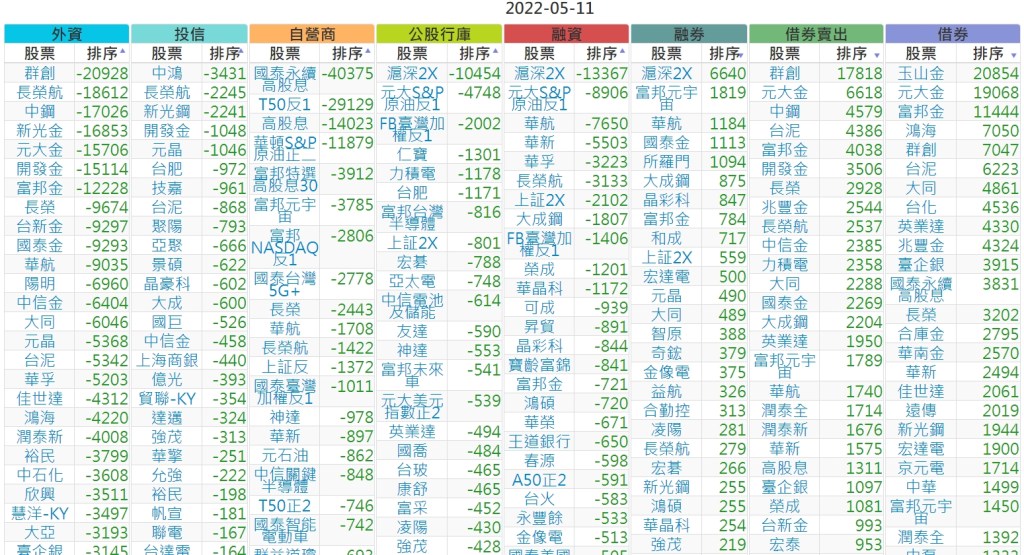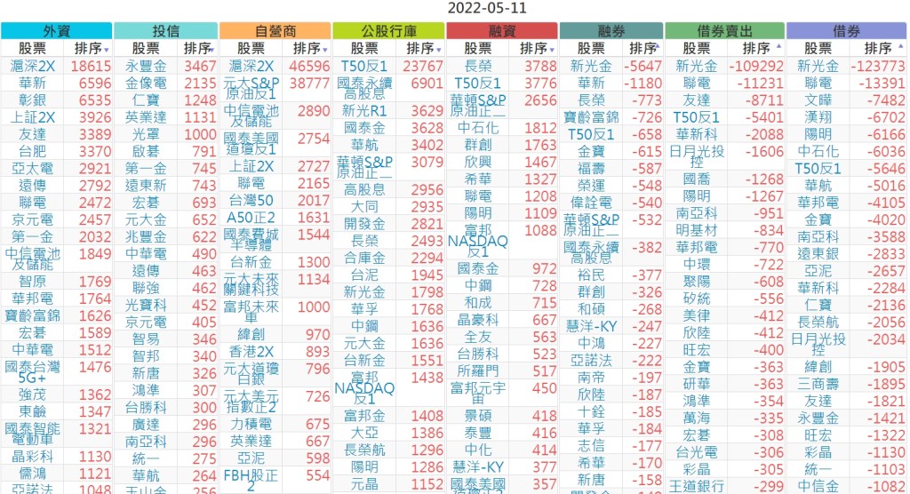 上市:【外資、投信】賣超(依張數)   (單位:張數)