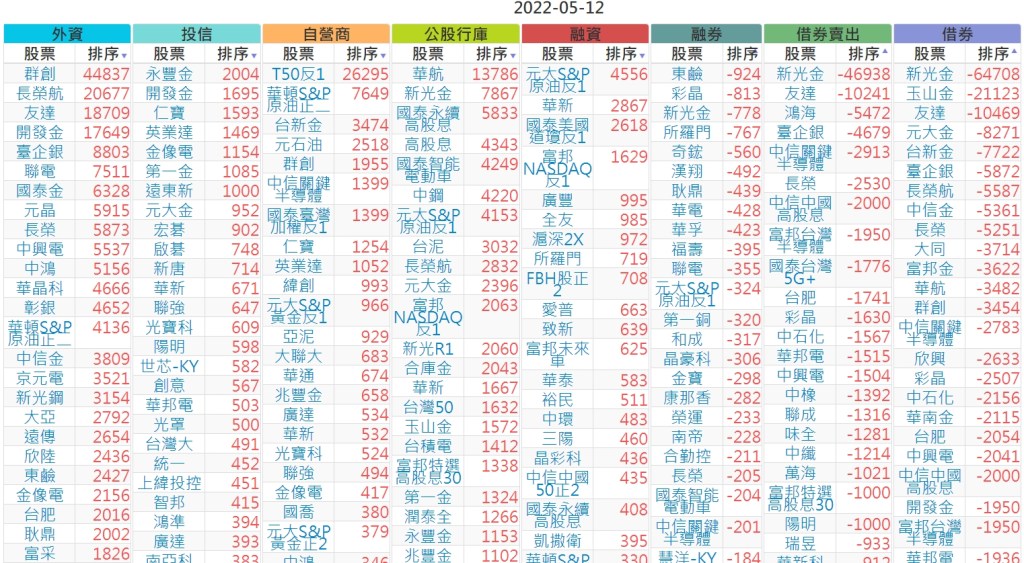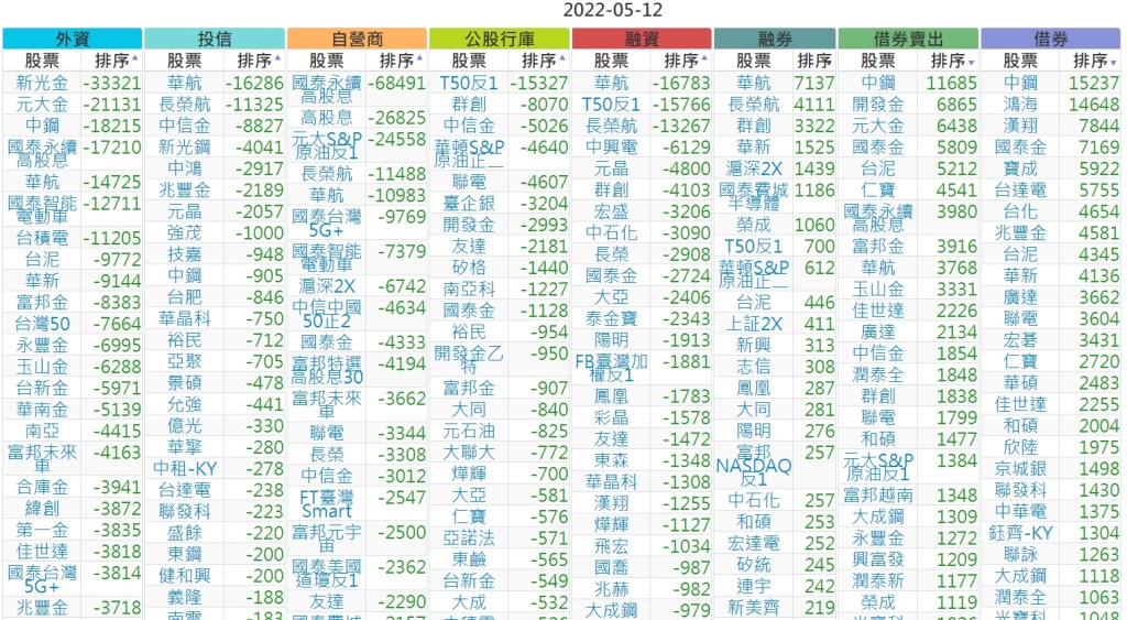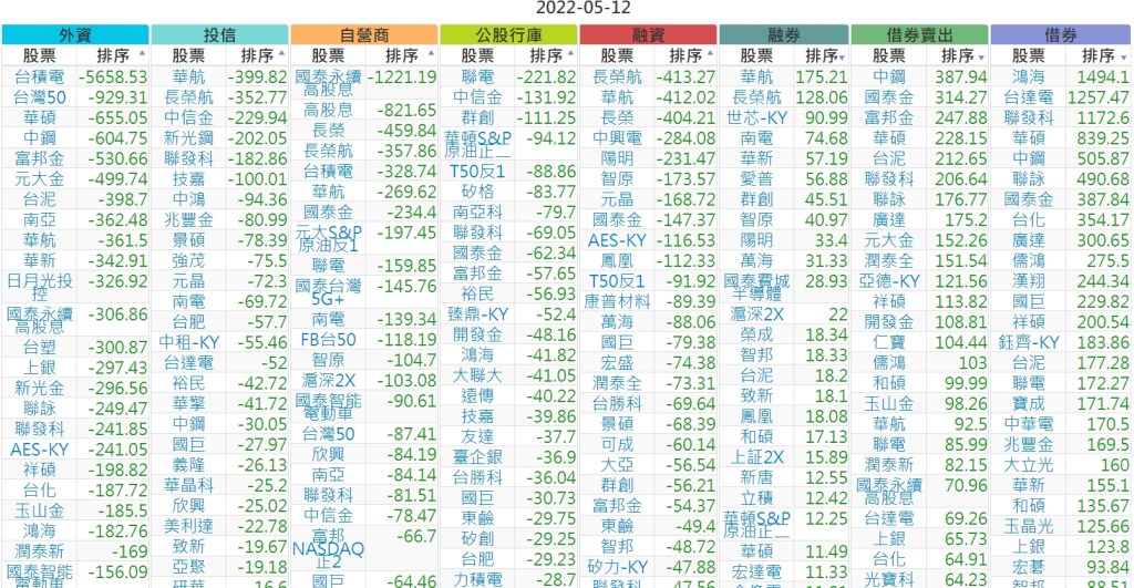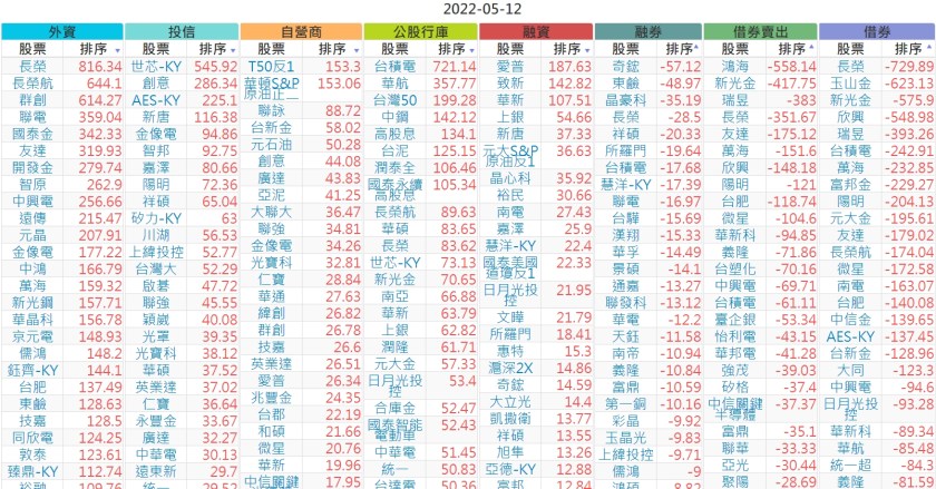 2022-0512上市【外資、投信】買賣超個股