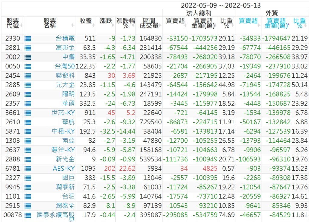【上市外資賣超個股】(以金額排行,單位:萬)