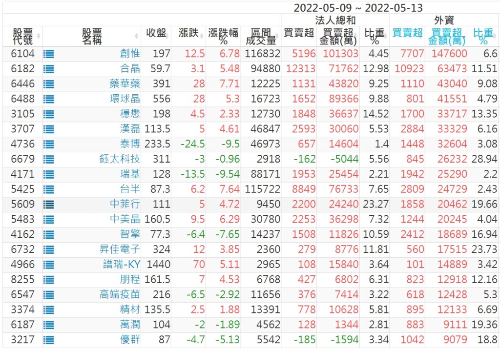 【上櫃外資買超個股】(以金額排行,單位:萬)