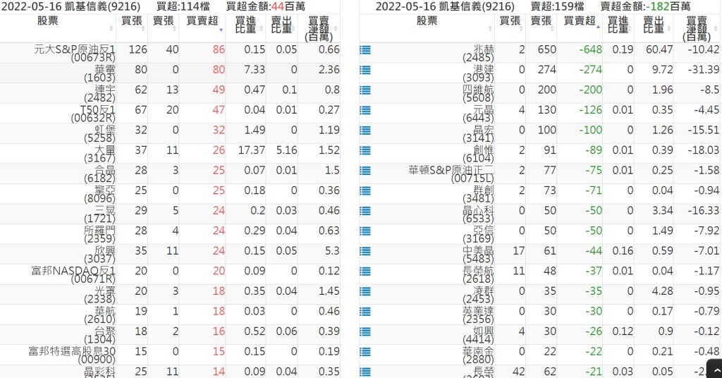 關鍵券商買賣超:
