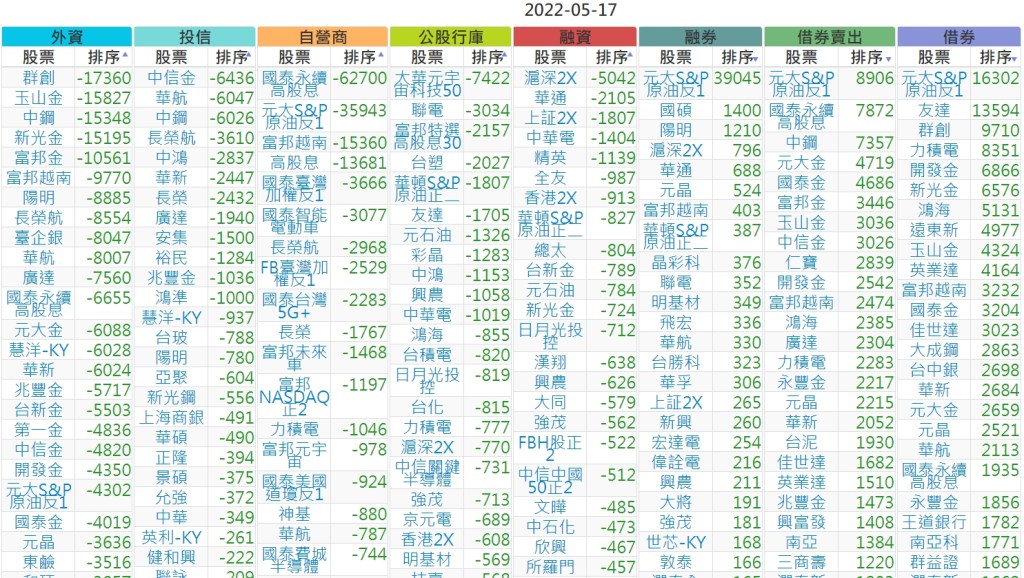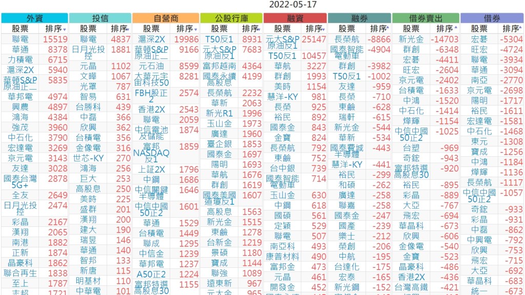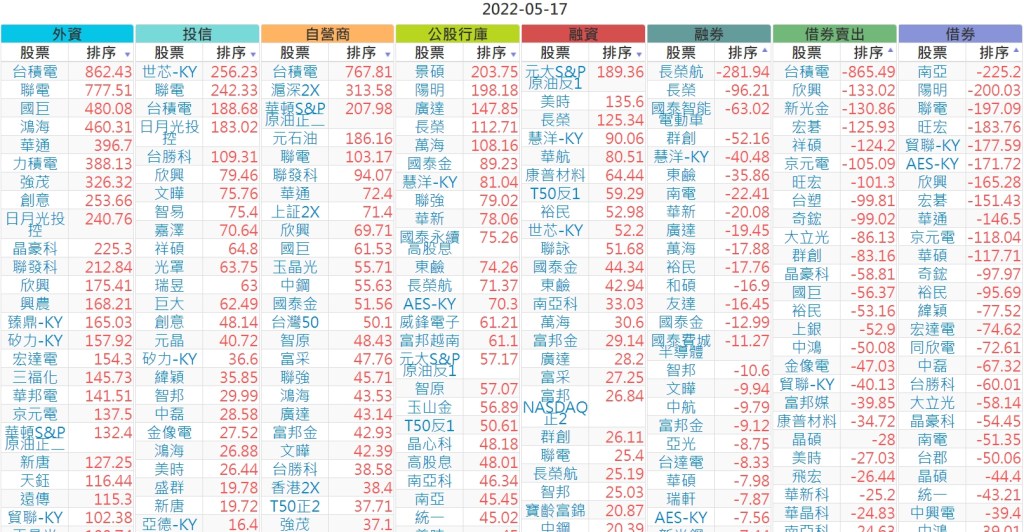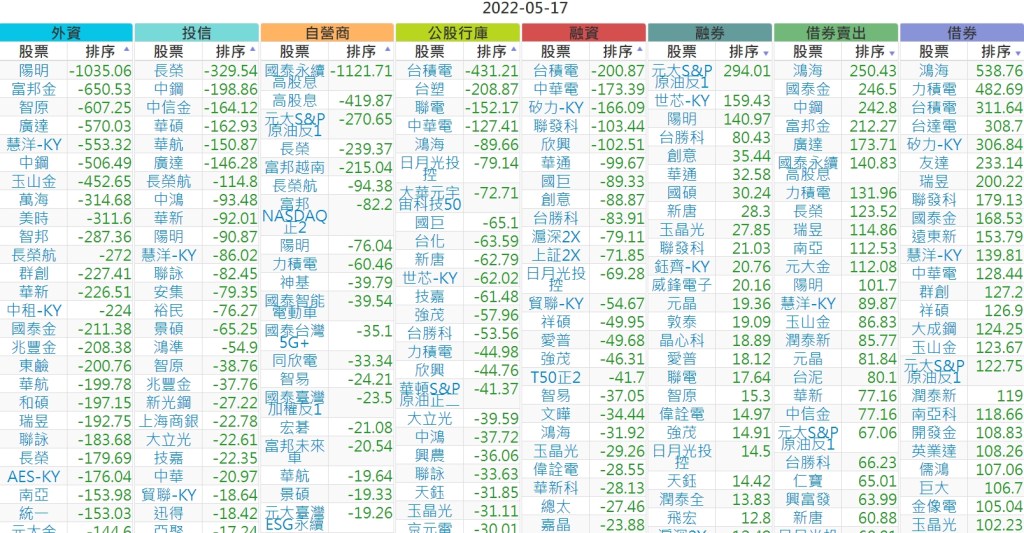 2022-0517上市【外資、投信】買賣超個股