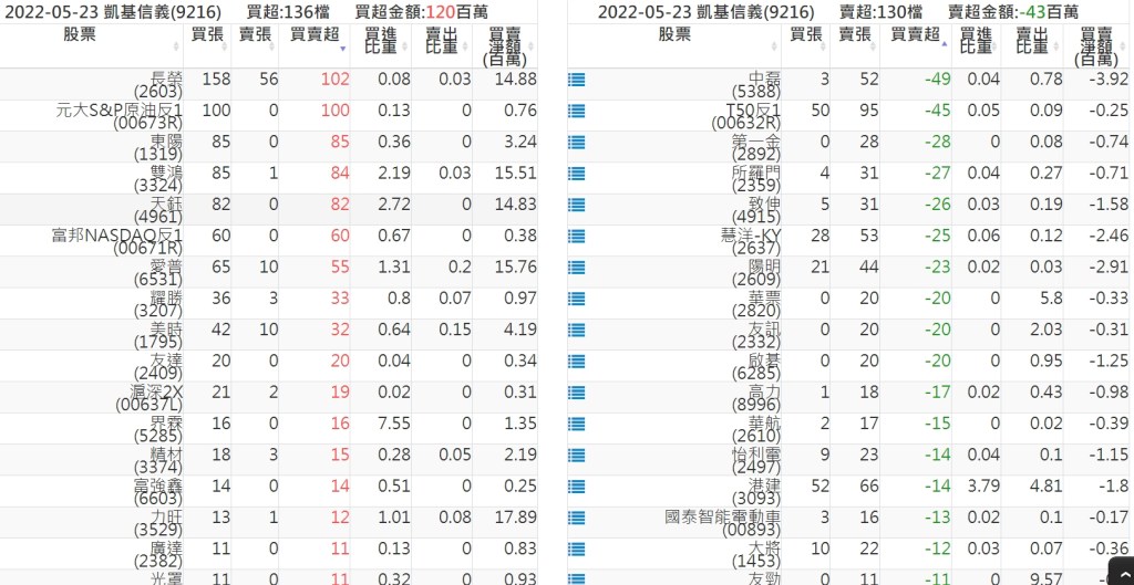 關鍵券商買賣超: