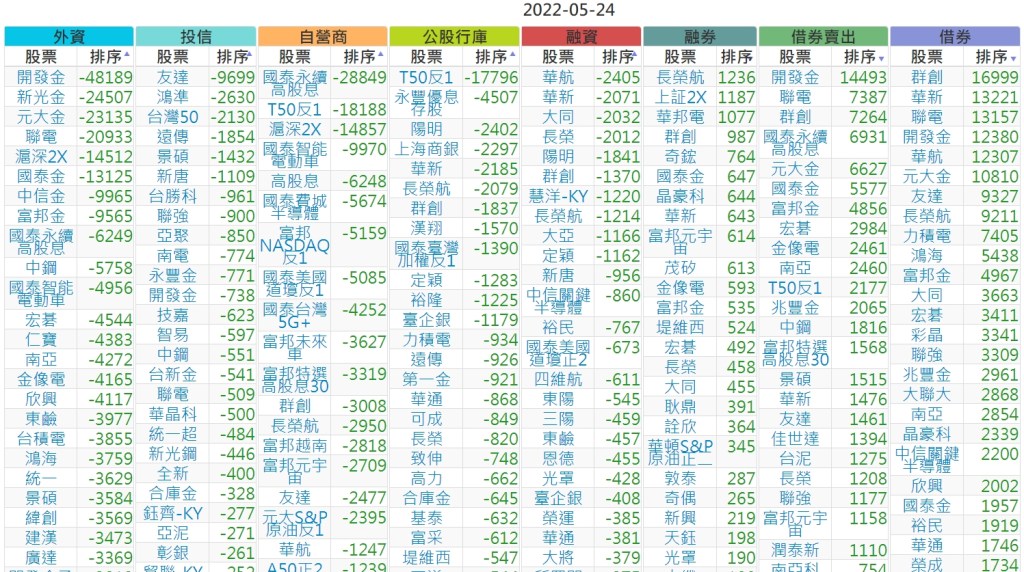 上市:【外資、投信】賣超(依張數)   (單位:張數)