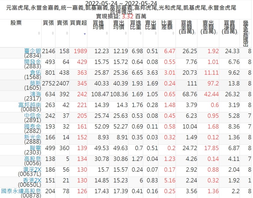『元富虎尾』,『永豐金嘉義』,『統一嘉義』,『凱基嘉義』,『富邦嘉義』,『富邦虎尾』,『光和虎尾』,『凱基虎尾』,『永豐金虎尾』。