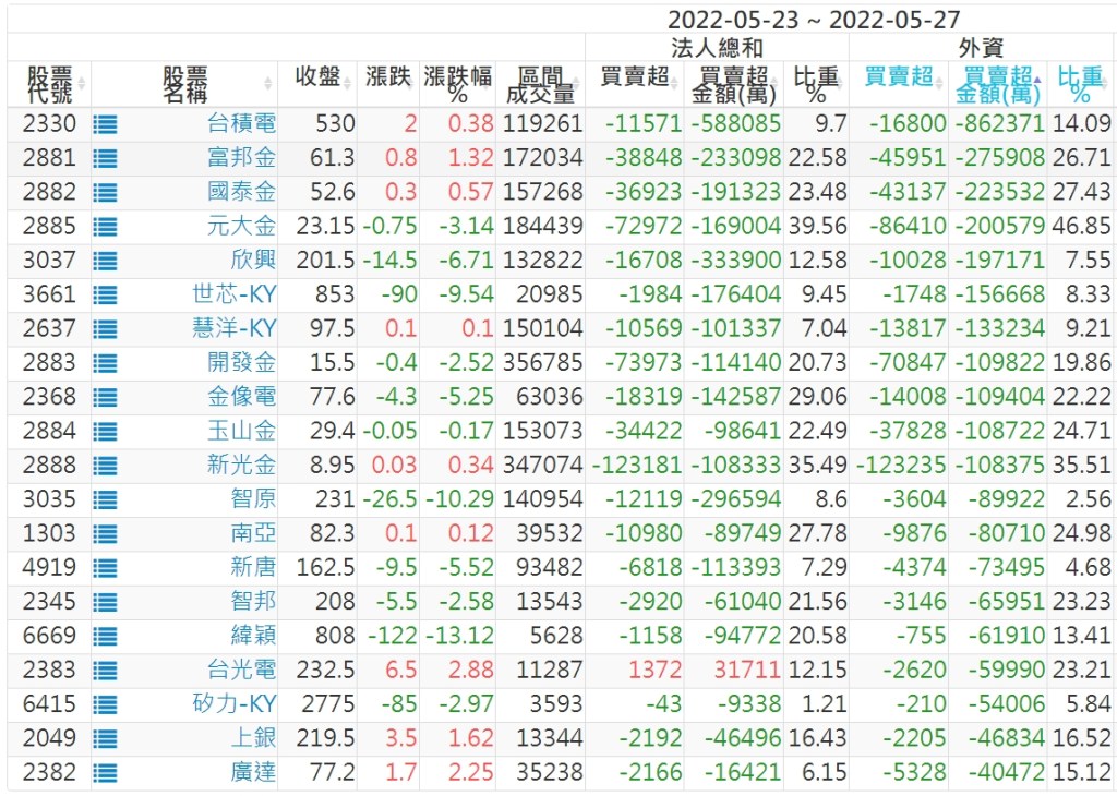 【上市外資賣超個股】(以金額排行,單位:萬)