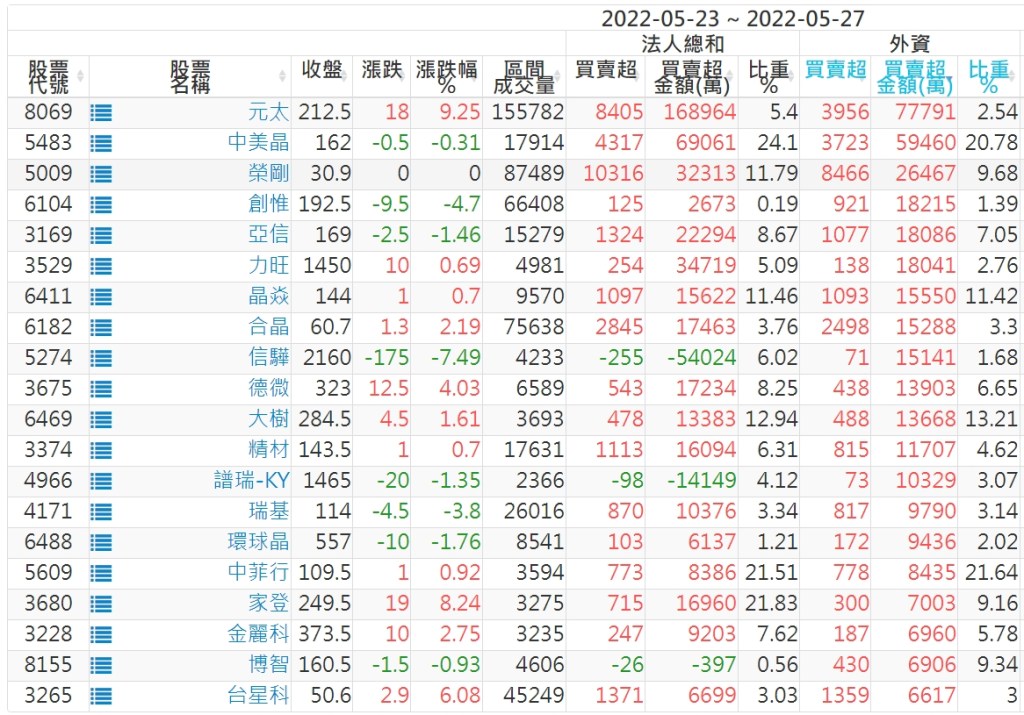 【上櫃外資買超個股】(以金額排行,單位:萬)