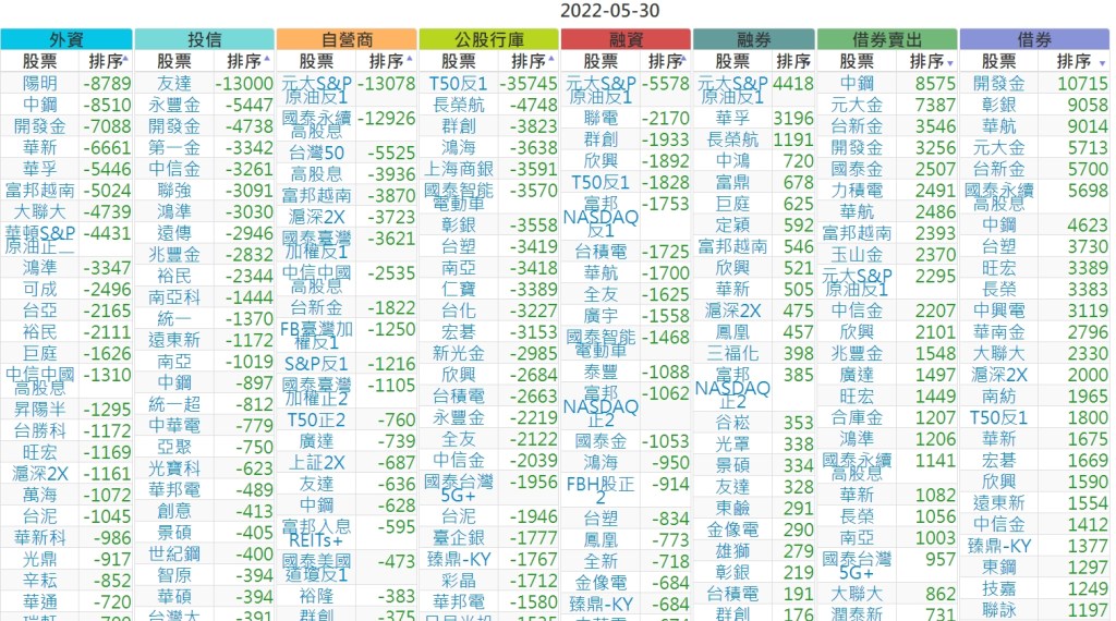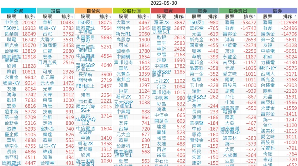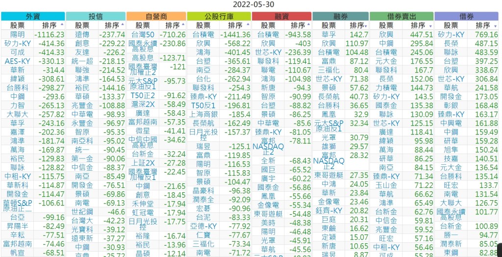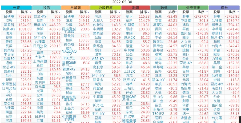 2022-0530上市【外資、投信】買賣超個股
