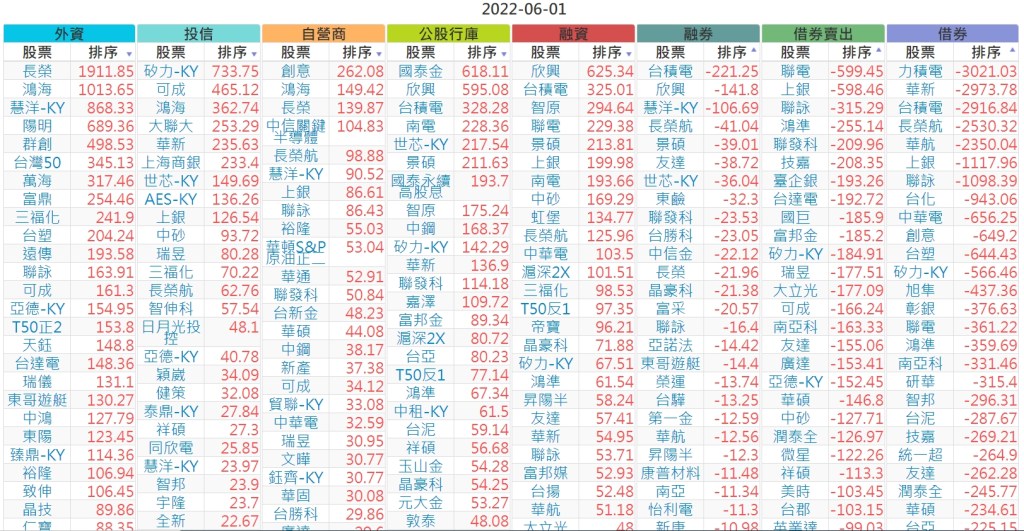 上市:【外資、投信】買超(依金額)   (單位:百萬)