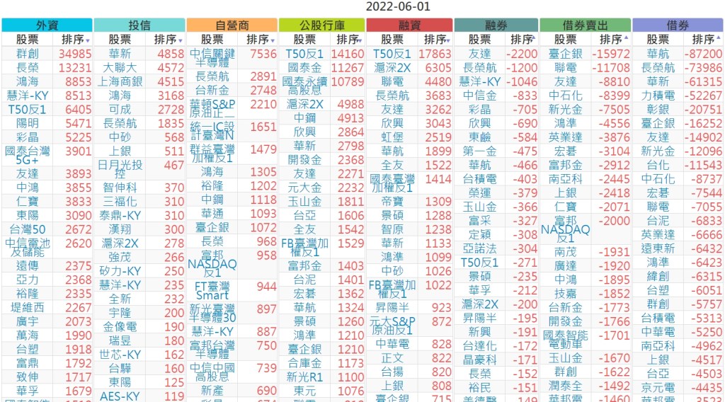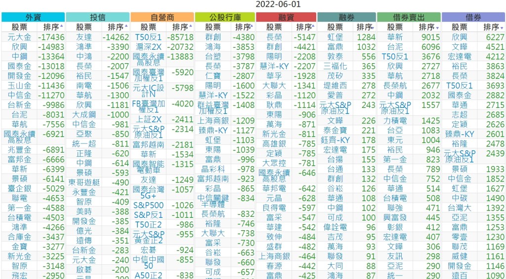 上市:【外資、投信】賣超(依張數)   (單位:張數)